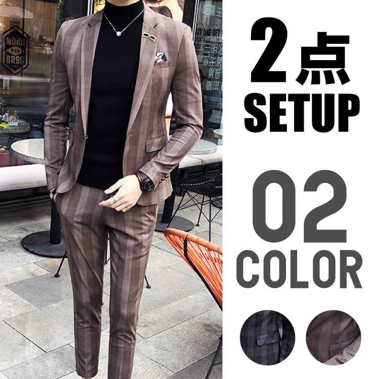 【2点セット】☆スタイリッシュスーツ 長袖メンズスーツ スーツ フォーマルスーツ 2ピーススーツ 結婚式A230-1-LJT605-P235